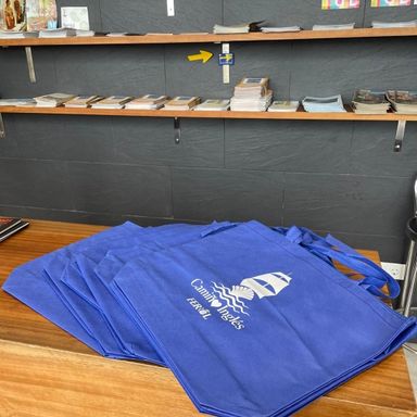 A Rede de Espazos do Camiño Inglés de Ferrol repartiron milleiros de bolsas entre os peregrinos/as que iniciaron o seu percorrido ata Santiago desde Ferrol. Un elemento práctico que lles acompañou durante toda a experiencia xacobea.